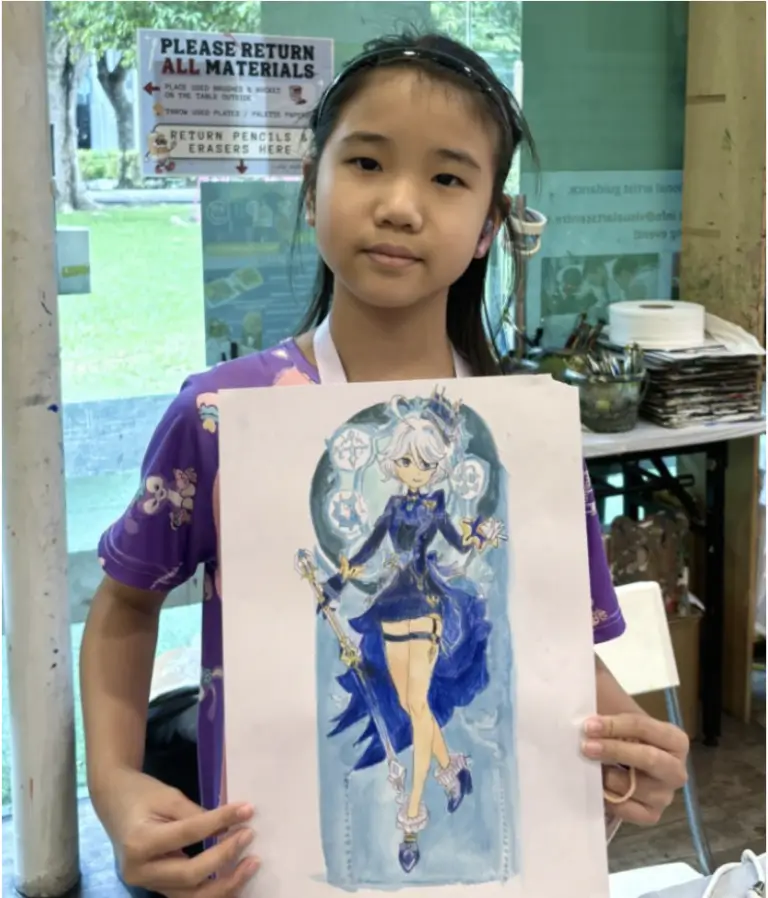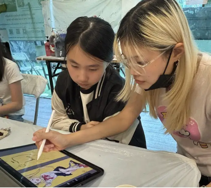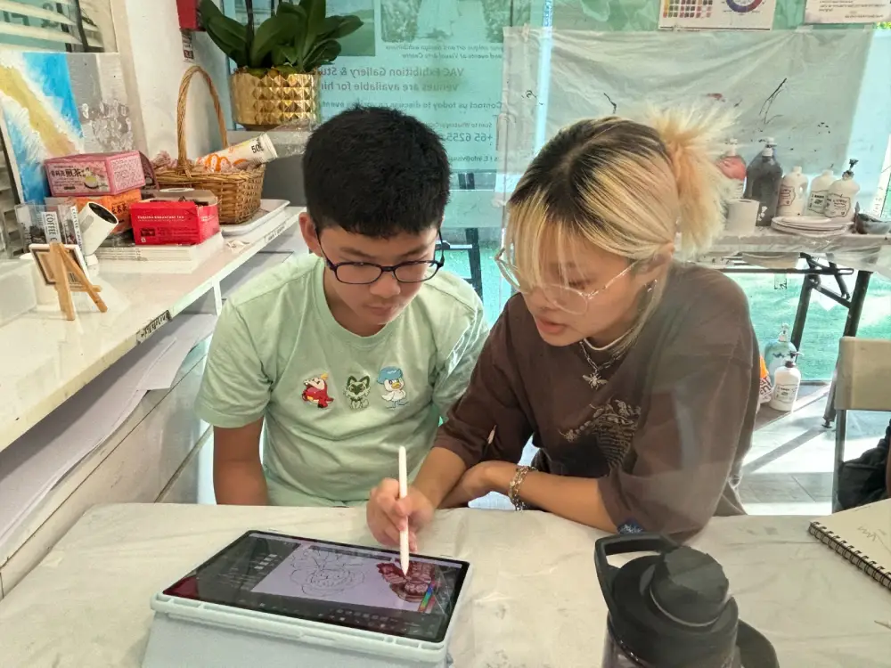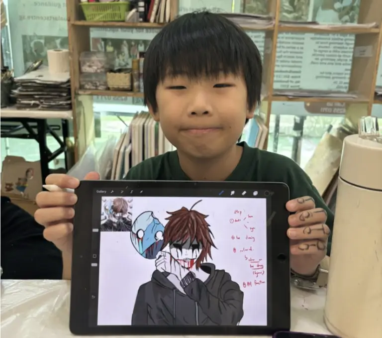 그 다음 디지털 아트 부문에서는 iPad, Apple Pencil, Procreate 애플리케이션을 활용합니다. 디지털 드로잉과 페인팅의 기초를 다루면서 학생들은 디지털 드로잉 소프트웨어에서 사용할 수 있는 다양한 도구를 사용하여 만화 창작물에 생명을 불어넣는 방법을 배웁니다.