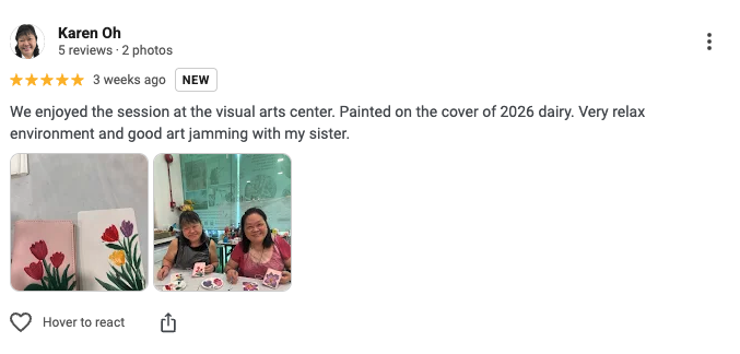 The art courses are available at both our Dhoby Ghaut Art Studio and MacPherson Art Studio, please choose your preferred location.
