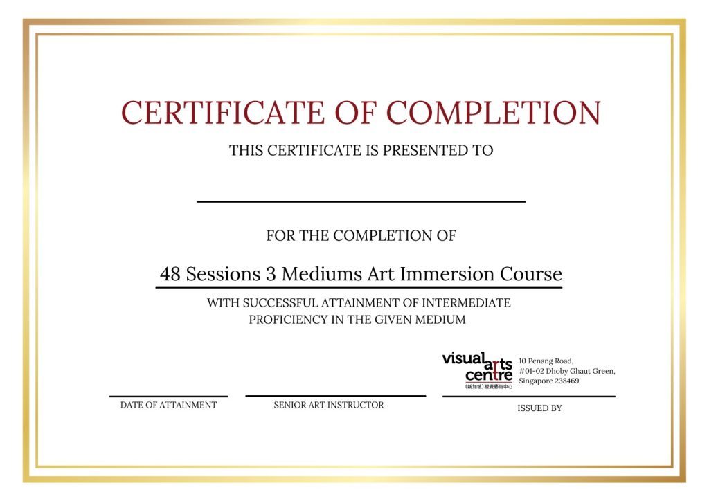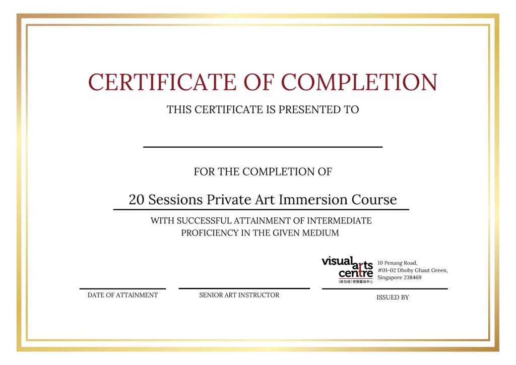 Certificate of completion will be provided for 96 sessions Art Course or 48 sessions & 10 sessions one-to-one Private Lesson.