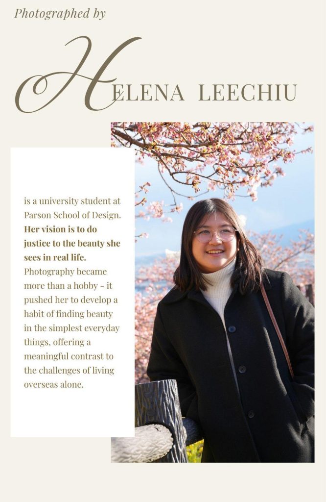 This year we will feature two new artists, Rovee Tan and Helena Leechiu, both university students paving their way in expressing their emotion and creativity through art. In a world saturated with images, these talents cut through the noise by offering their perspective of the pristine vista that resonates with the Maker’s hands.