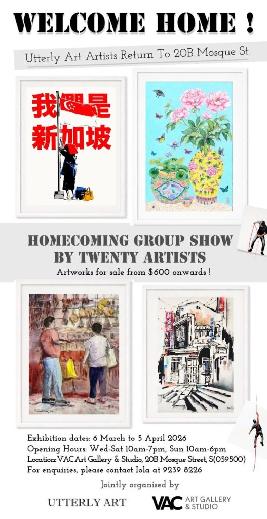 If there’s one art exhibition in Singapore you shouldn’t miss this March, Welcome Home! – Utterly Art Artists Return to 20B Mosque Street is it.