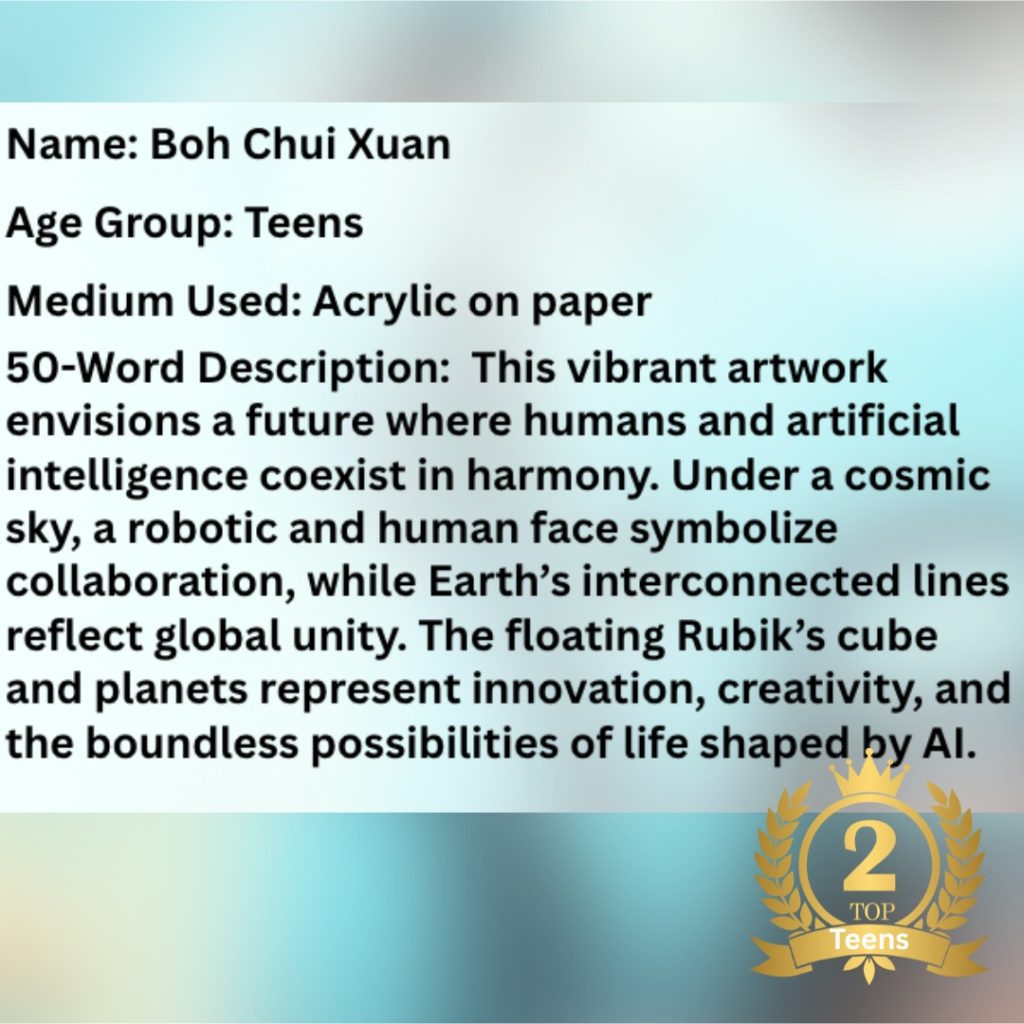 2025新加坡“AI时代的梦想”儿童&青少年绘画大赛旨在通过艺术绘画作品展现人与AI(人工智能)的创意碰撞与互动。AI给我们生活中带来的福利以及我们与AI共同生活的美好家园。本次比赛为广大青少年提供了一个展示自我创意的平台。